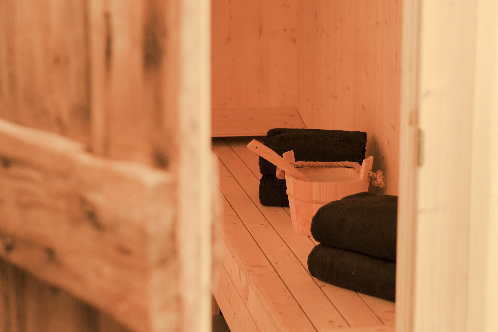 In der finnischen Stadelsauna aus Fichtenholz können Sie den „alten Stådl“ spüren und mit Heuduft in der Nase entspannen und die Seele baumeln lassen.